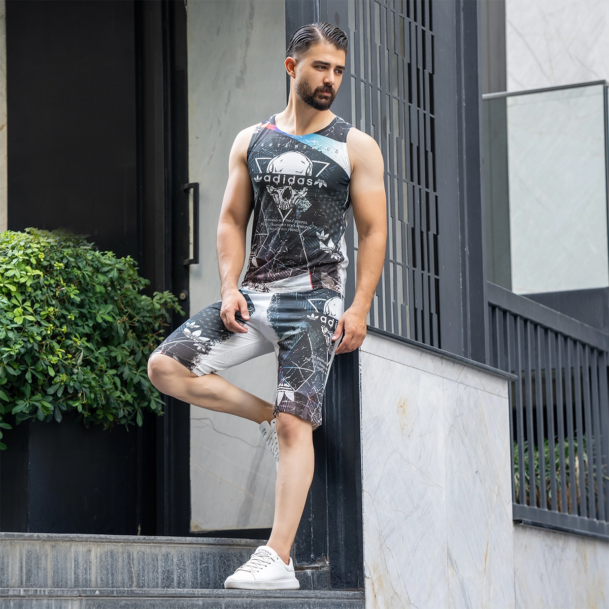 ست رکابی شلوارک مردانه آدیداس طرح جمجمه